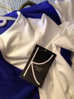 VESTIDO HERMOSO, AZUL CON BLANCO MARCA KASPER DRESS, TALLA 1X MANGA LARGA, TOTALMENTE NUEVO CON ETIQUETA, NOTA: (TIENE UN DETALLE EN LA PARTE DE ATRAZ, UN PEQUEÑO DESCOCIDO)