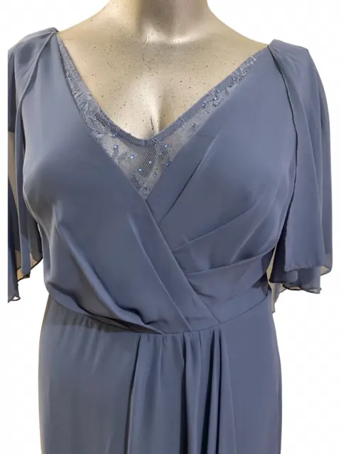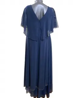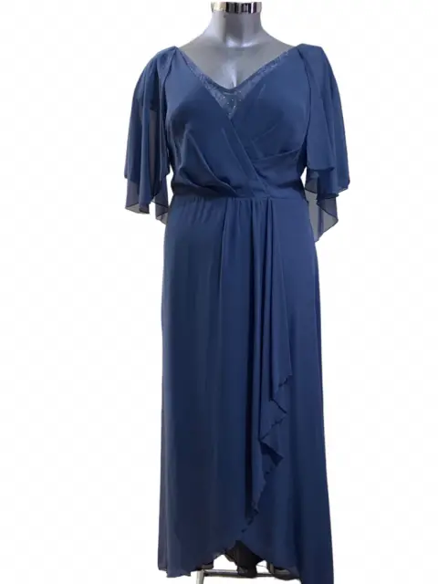 Hermoso vestido maxi, azul acero, talla 20 USA 2XL MEX EVER PRETTY, manga corta