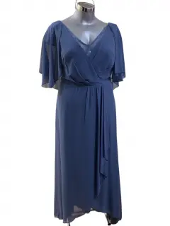 Vestido maxi Azul EVER PRETTY. Hermoso vestido maxi, azul acero, talla 20 USA 2XL MEX EVER PRETTY, manga corta
