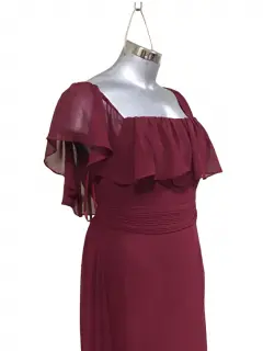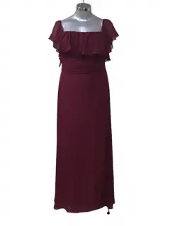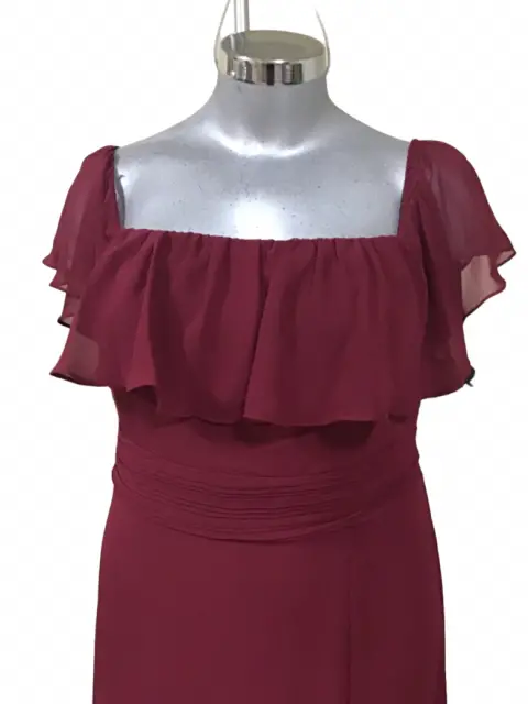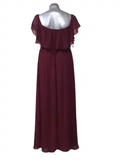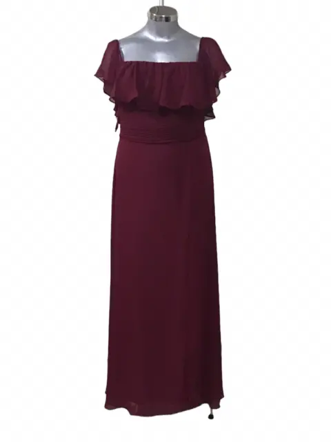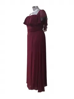Hermoso vestido maxi, tipo campesino, color vino, de la marca EVER PRETTY, talla 16