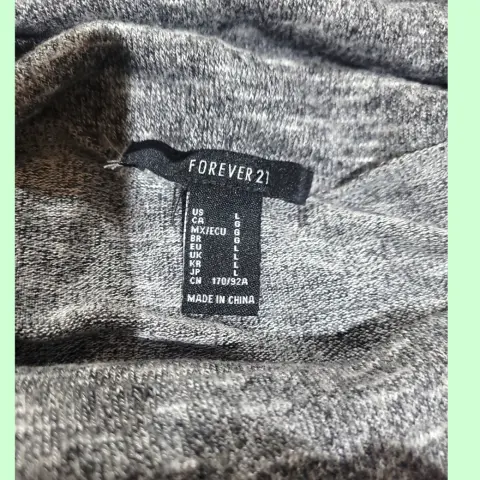 Vestido Maxy Forever 21. Vestido Maxy Forever 21, talla grande, color gris claro, cuello de tortuga, manga 3/4, habierta mediana a un lado bajo, hecho de poliéster, rayón y elastano, estilo slip-on, mide 38cm de hombro a hombro, 19cm de largo en cuello, 39cm de axila a axila, 38cm de cintura con pretinas para cinturon (no lo incluye la venta), 118cm de largo del hombro hacia abajo con abertura de 32cm en parte baja, usado