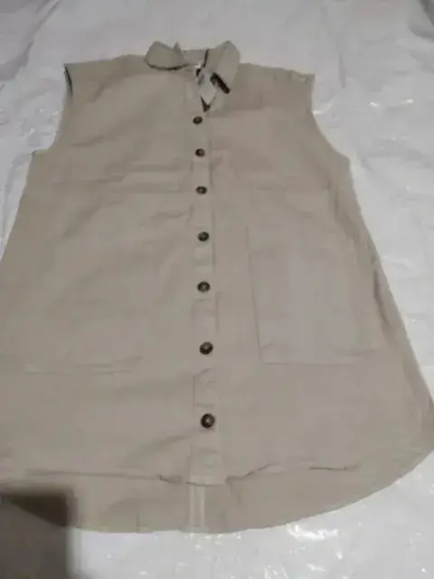 Vestido mezclilla beige. Axila a axila mide 62cm y largo 89cm, la tela nones stretch, color combinable también puede usarse como camisa nuevo sin detalles