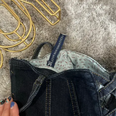 Vestido de mezclilla azul marino con cierre lateral, tirantes ajustables. Dice talla mediana pero viene chico, nuevo sin ningún detalle, queda Perfecto a xs o s