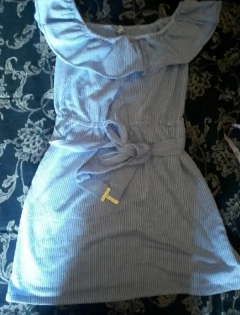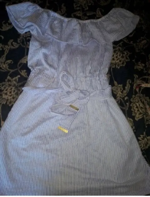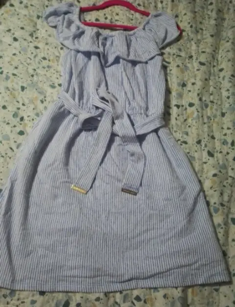 Vestido Michael Kors. MICHAEL Michael Kors Vestido de cintura con lazo y manga corta con cuello cuadrado y volantes a rayas con bolsas alos lados las primeras dos imágenes son ilustrativas cintura 36cm hombro a hombro 39 cm cadera 47 cm