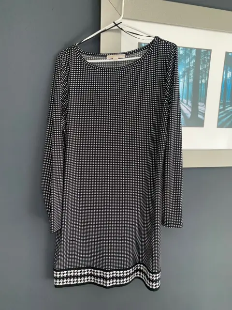 Hermoso vestido Michael Kors, poco uso. Está impecable es talla XL pero queda Perfecto a una talla L , es manga larga pero es Super ligero y fresco. Color blanco con negro.