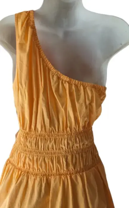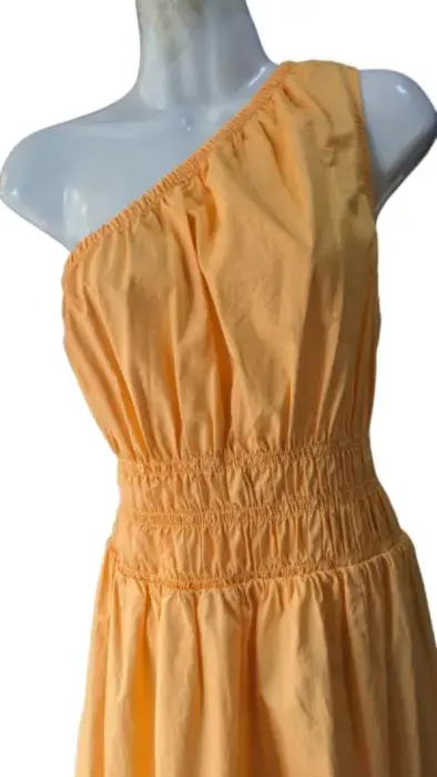 🌻 Vestido MIDI de un hombro 🧡🌻 Talla 0X 🙂 Queda a una L y XL 👌🏻😉🌻 Color mango 🥭🌻 Abertura en la pierna izquierda ☺️🌻 100% algodón 🙂🧡🌻 Luce hermosa con este lindo vestido 😍🌻¡Te encantará! 🥰😍🌻NOTA: los colores pueden variar un poco del original dependiendo de la luz y de la cámara 📸