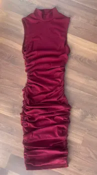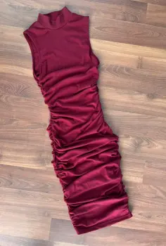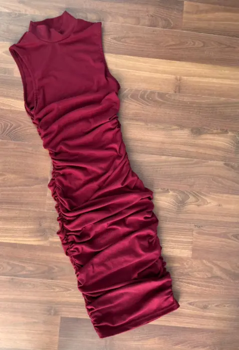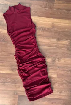 Muy lindo vestido midi guinda , es strech talla xs , con pliegues a los costados está muy lindo y ajusta perfecto . Hago combos y realizo envíos diarios.
