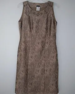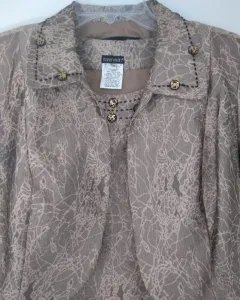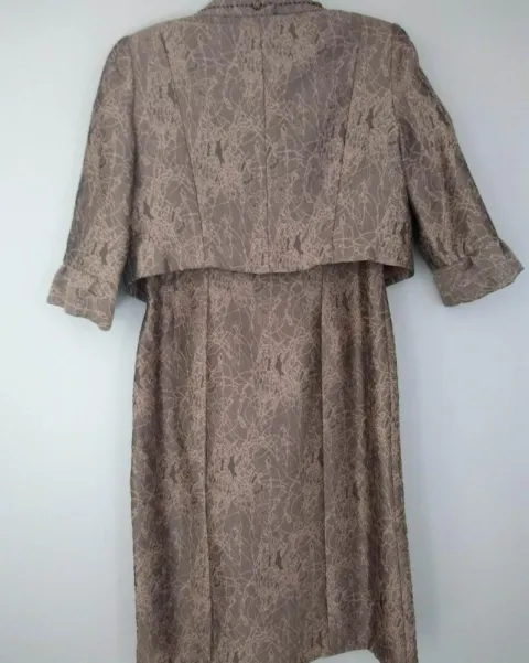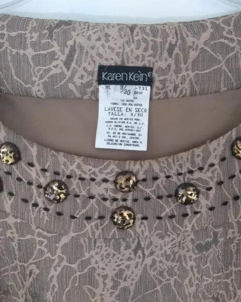 Vestido midi silueta con torerita dorado, talla 9/30, la tela tiene textura de grabado en relieve, es sedosa y ligera, tanto la torerita como el vestido tiene aplicaciones de pedrería en el cuello y ambos están forrados, el vestido por el estilo puede usarse tanto para fiesta formal o para salida más casual de antro, el vestido esta en muy buen estado, no tiene detalles, ancho de hombro: vestido ≈ 31 cm, torerita ≈37 cm, ancho de Axila≈48 cm, ancho de Cintura ≈ 46 cm ancho de Cintura=41 cm, ancho de Cadera ≈ 52 cm, Te regalo $100 con mi código de descuento si es tu primera compra iuNisj3oSQ