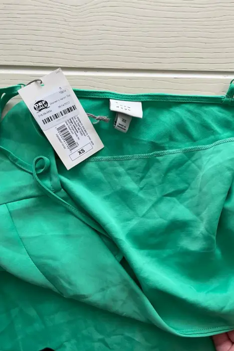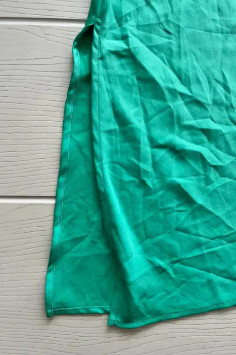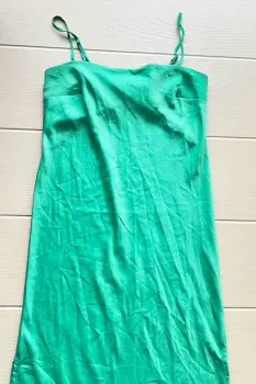 Vestido verde midi de tirantes la tela es tipo satinada, tirantes ajustables, con abertura de lado, la tela no estira, viene con protector en el pecho para utilizar sin bra.Medidas:Axila a axila: 47 cmLargo: 127 cm