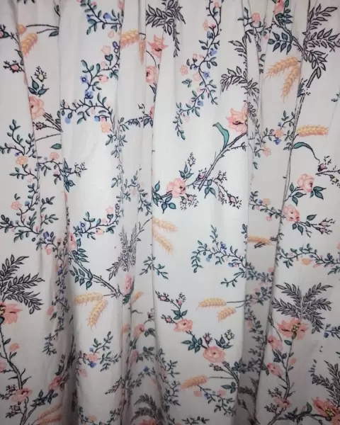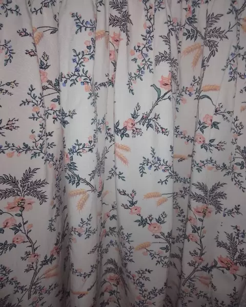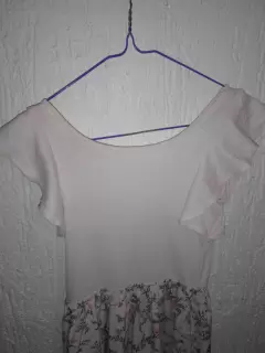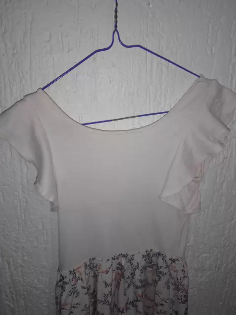 Es un vestido mido, estampado floral, se puede utilizar con sandalias o con botas, la parte superior es de algodón, tiene escarolas en la manguita, mide 78 cms de largo.