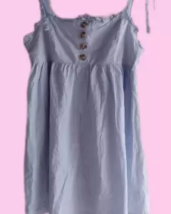 Vestido corto. El modelo es Baby doll. Los tirantes se ajustan haciendo nudito.Es muy fresco , tela de algodón. Tiene botón de repuesto.