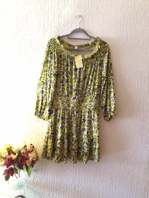VESTIDO MK AMARILLO HERMOSO. LINDO VESTIDO MICHEL KORS, NUEVO CON ETIQUETA TALLA M, MANGA LARGA ,FRESCO TELA SUAVECITA , RESORTE EN LA CINTURA, CUELLO TAMBIÉN CON RESORTE, HOLAN EN LA PARTE BAJA, RESORTE EN MANGA,