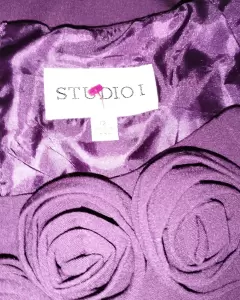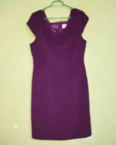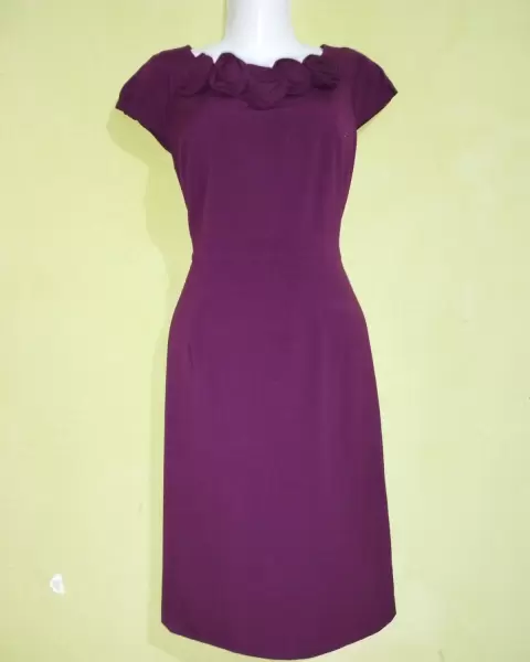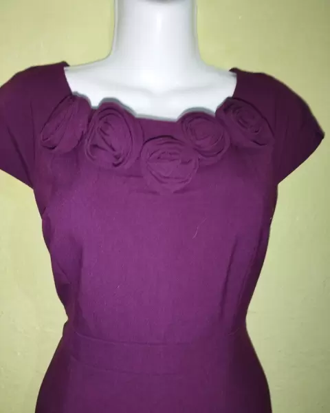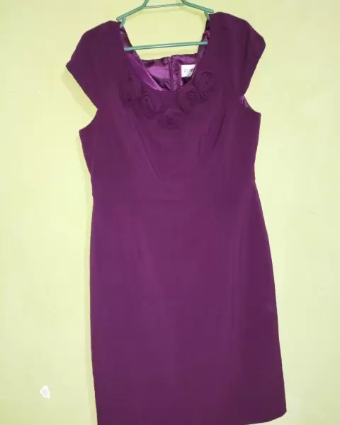 Vestido Morado. Vestido recto, con cuello redondo, flores en cuello.No estira Color: MoradoTalla: 12
