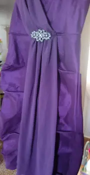 Vestido morado, tela shantu con ajuste al cuerpo.