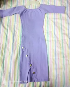 Bonito vestido casual morado ,tela tipo licra estira un buen , unitalla ,tiene una abertura en la entre pierna y un bonito detalle de botones