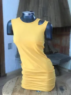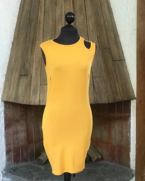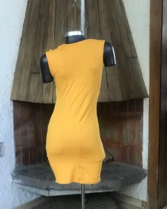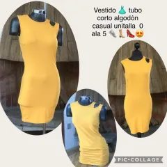 Vestido mostaza corto algodón. Padrísimo vestido mostaza de tubo corto básico en un guardarropa hazlo formal e informal dependiendo el calzado que te pongas excelente calidad y precio no se transparenta qué edades de la talla cero a las cinco