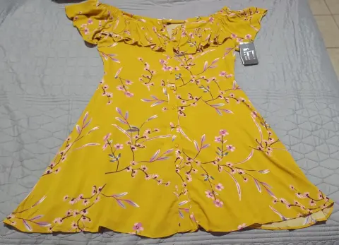 Hermoso vestido nuevo con etiqueta, talla XL, tela fresca perfecto para tiempo de calor, los botones no son decorativos, sino funcionales. No estira. Medidas:Largo. 76 cmCintura. 41 cmVuelo del vestido. 86 cmAxila. 50 cm.Hombro. 40 cm