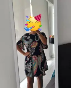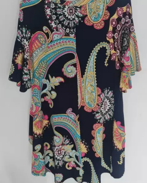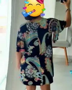 Vestido multicolor súper cómodo, cuenta con bolsas laterales y es bastante amplio.