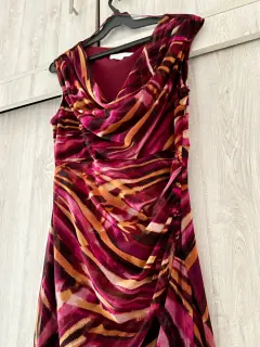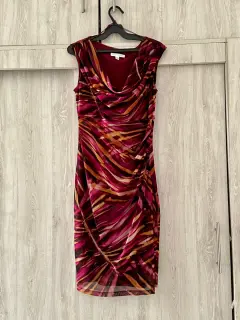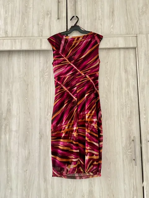 Vestido multicolor con detalle de fruncido al costado, manga corta. Con cierre invisible. Sin detalles y en perfecto estado! Se ajusta al cuerpo! Marca London Times, de Liverpool.