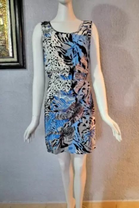 Vestido Multicolor DKNY. Vestido Multicolor talla-10Tela ligera diseño drapeado en la parteDe la falda Cierre en un lado