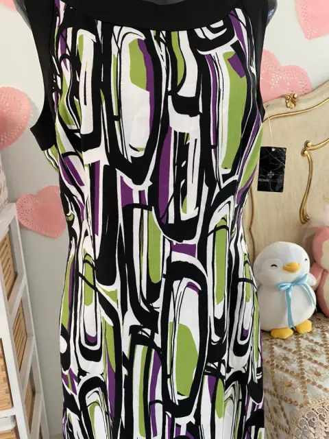 A estrenar con etiqueta 🏷️. Divertido vestido multicolor (blanco 🤍, morado 💜, verde, 💚, negro🖤). Hace muy bonita silueta. Talla M.💜🔢ꪑꫀᦔιᦔꪖડ:Axila a axila 48 cmCintura 42 cmCadera 52 cmLargo 92 cm.♻️ 97% poliéster, 3% spandex♻️