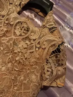 Bonito vestido de encajeel color esta entre cafe y beige seminuevo sin detalle en talla #38 y 97cm de largo es de la marca Mussi solo tiene una puesta