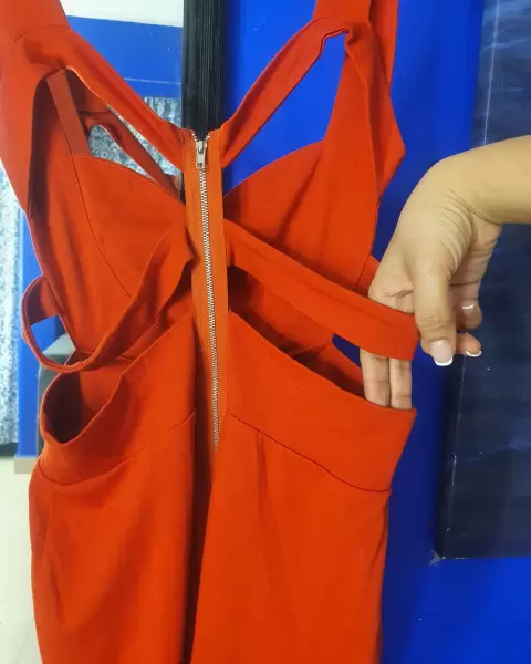Vestido naranja. Hermoso vestido con frente en forma de corazón y espalda descubierta
