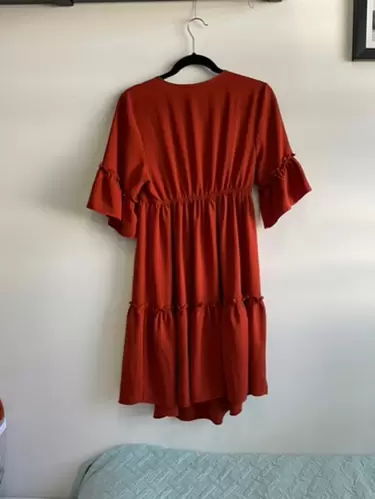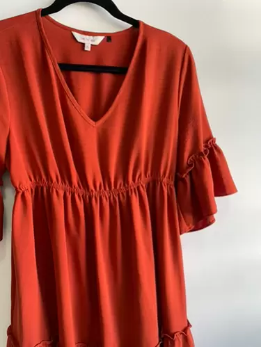 Vestido Naranja. Hermoso vestido talla M, marca One to nine, mide 40cm de hombros, 36cm debajo del busto pero tiene elástico, y 100cm de largo, solo se usó 2 veces, no tiene detalles.