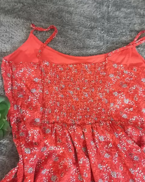 Vestido color naranja, excelente estado, sin detalles, de tirantes, talla M, super fresco y cómodo.Vestido de la modelo, solo de ejemplo