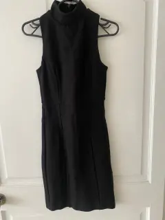 Vestido negro. Tela gruesa, tipo licra. Estira y se amolda muy bien.