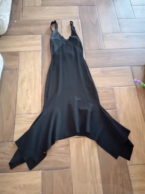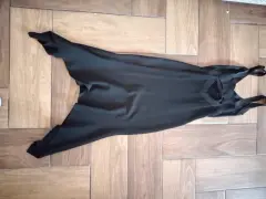 Vestido negro. Vestido ceñido al cuerpo, tela gruesa, largo a la pantorrilla escote en la espalda
