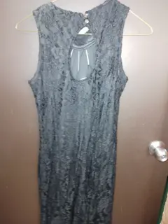 Vestido negro, muy bonito se entalla muy buen, trae un accesorio en el cuello y lo hace ver miy bien, acepto ofertas