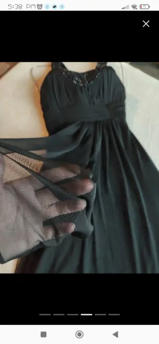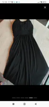 Elegante vestido de gasa negrolargo con pedreria en el cuellocuerdas para ajustar por la parte de atrasSin ningún detallePuesto solo una vezNina Ferre