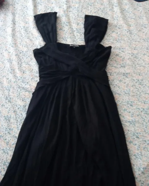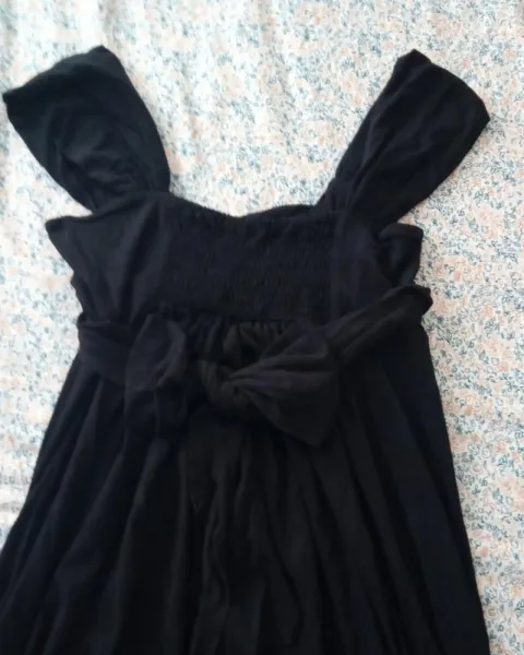Hermoso vestido holgado color negro talla chica es amplio por su caída llega hasta las rodillas es tela calienta