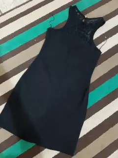 Lindo vestido negro, talla s, sin detalle, queda arriba de la rodilla y hace muy bonita cintura.