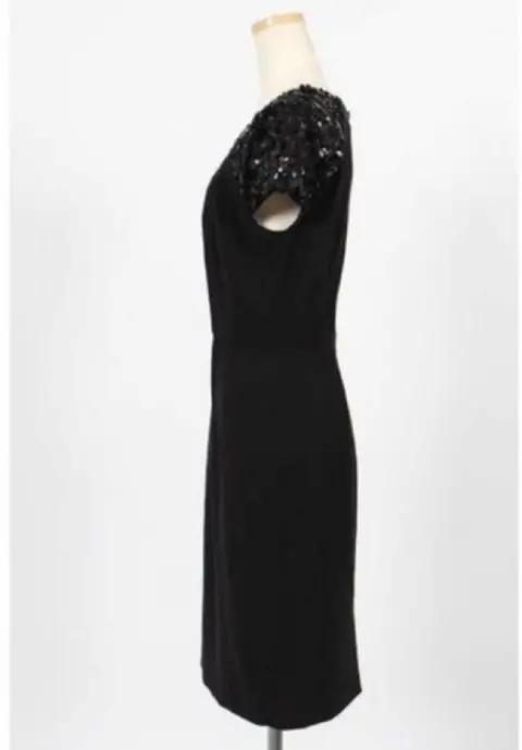 Vestido tubo negro BCBG MAX AZRIA, Cuello redondo, manga corta con lentejuelas, Composición: 93% Seda artificial, 33% poliuretano, Longitud del vestido: 87 cm Condición: sin etiqueta Tamaño: 08 Imagen de inspiración