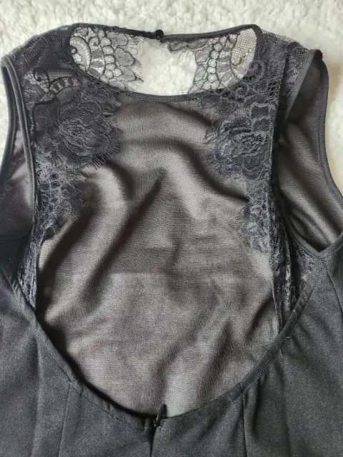 Vestido negro con encaje en la espalda y escite pronunciado sexy, entallado, para ocasiones casuales o formales.