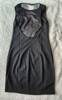 Vestido Negro Casual. Vestido negro con encaje en la espalda y escite pronunciado sexy, entallado, para ocasiones casuales o formales.