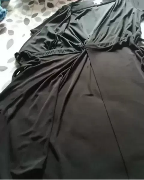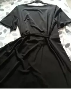 Vestido negro cintura ajustable. Vestido de tela ligera qué se amolda al cuerpo, no transparente, ajustable en la cintura, cuello v