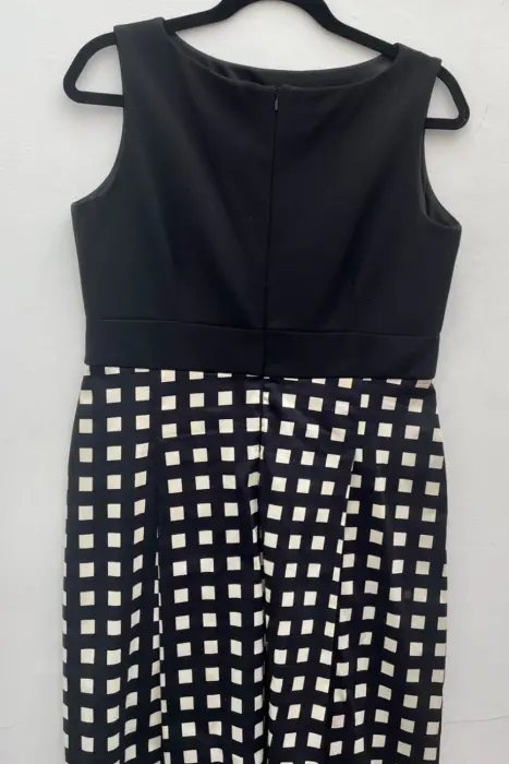 Vestido formal, entallado, negro y cuadros blanco con negro, talla 10, marca Wanda Amieiro, en perfectas condiciones