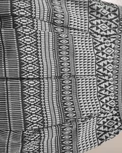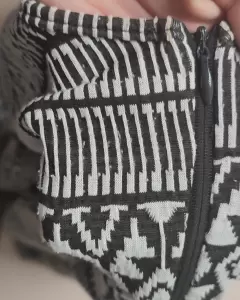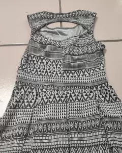 Vestido negro con blanco, talla ch. Vestido con dibujos negro con blanco, sin manga, cuello redondo delantero y hueco pequeño en la espalda, con cierre en un costado, corte A, falda con vuelo95% poliester y 5% elastano.