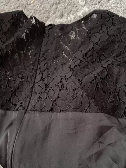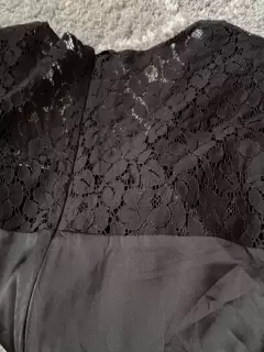 Hermoso vestido negro con encaje. Es strapless pero a parte tiene como la otra parte de encaje del vestido sobre puesta. Medidas ax a ax 45 cm cintura 36 cm, largo 84 cm