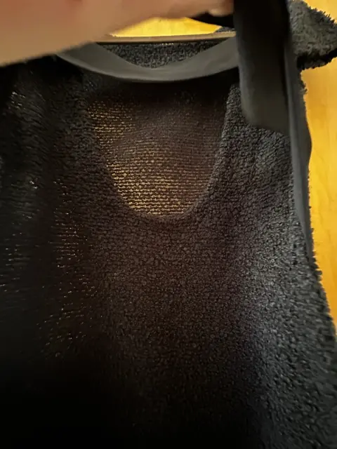 Vestido negro con espalda semi-descubierta ya que la atraviesa con listones. En perfecta condición. Es talla L de Área Code.