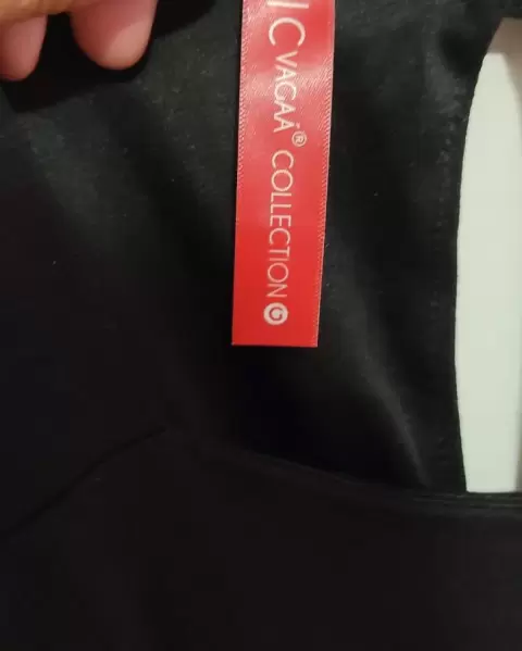 Vestido negro con flor roja stresh te amolda muy muy bien arriba de la rodilla