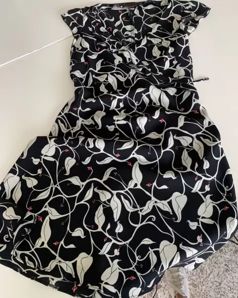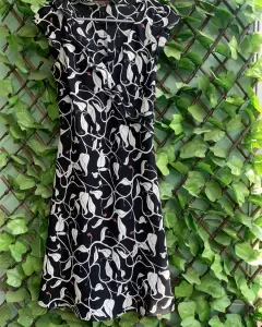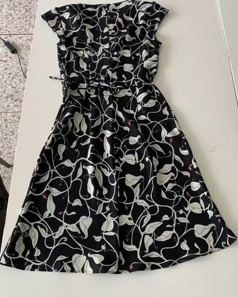 Vestido negro con flores blancas. Vestido casual cómodo, fresco en perfectas condiciones, no se transparente color negro con flores blancas y pequeños detalles en rojo