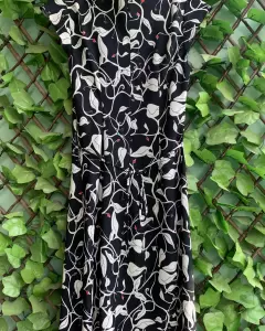 Vestido negro con flores blancas