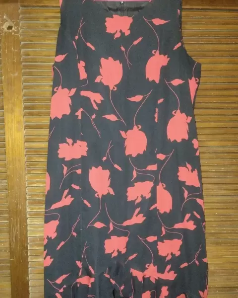 Vestido a la rodilla con olan,negro con flores rojas.Es talla 13Se encuentra en excelente estado