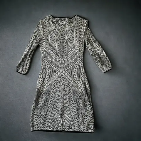 Bonito vestido que se amolda a tu cuerpo súper bien, talla 4 cuello redondo en color negro con grecas en blanco