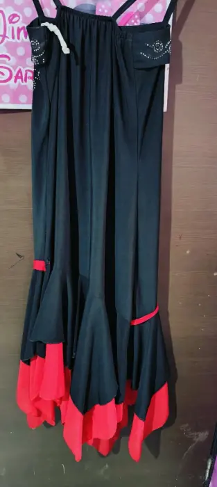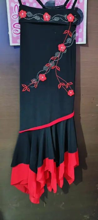 Vestido negro con rojo y flores. Esta en buenas condiciones, talla mediana, elegante y muy padre no tiene ningún detalle