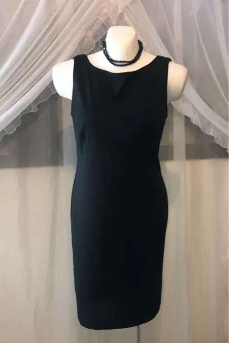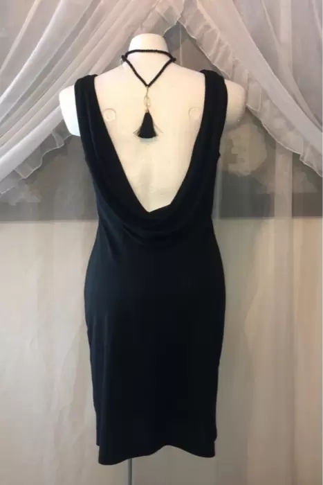 Vestido negro corto tipo coctel, no trae cierre o boton, el estilo es flojito con escote en la espalda.Medidas:Axila a axila: 53 cmCintura: 98 cmLargo: 97 cm de hombro a ras de largo